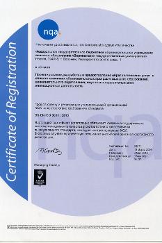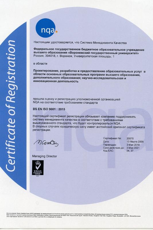 Система менеджмента качества университета прошла оценку и регистрацию уполномоченной организацией NQA (г. Томск) на соответствие требованиям международного стандарта ISO 9001:2015 в следующих областях: проектирование, разработка и предоставление образовательных услуг в области основных образовательных программ высшего образования, дополнительного образования; научно-исследовательская и инновационная деятельность.