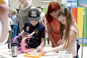 В зоне «Эксплотариум» представители Естественнонаучного детского университета рассказывали и показывали детям, как пользоваться настоящими микроскопами.