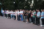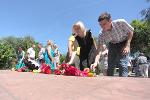 Участники акции пронесли по ступеням мемориала горящие свечи как символ всенародной памяти и признательности всем, кто выстоял и победил в борьбе с фашистскими захватчиками. Память погибших почтили минутой молчания и возложили цветы.