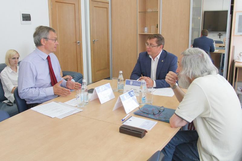 15 августа ректор Воронежского государственного университета Дмитрий Ендовицкий встретился с заместителем декана философского факультета Института славянской филологии Университета им. Георга-Августа (Гёттинген, Германия) Маттиасом Фрайзе. Участником встречи также стал зав. кафедрой истории и типологии русской и зарубежной литературы филологического факультета ВГУ Андрей Фаустов.