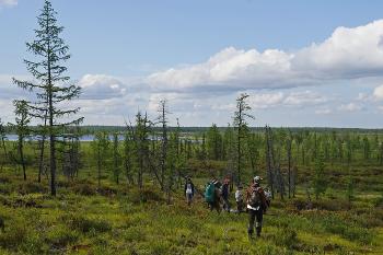 Для первого отряда были закреплены четыре ключевые точки. В задачу отряда входило комплексное обследование болотистых и сильно заболоченных участков в 4-х природных зонах: Средняя и Северная тайга, лесотундра и предгорье Полярного Урала. На каждой точке за 10 дней необходимо было провести не менее 80 геоботанических описаний, почвенных профилей, фиксирование глубины залегания многолетней мерзлоты, сбор и определение мохово-лишайникового компонента.