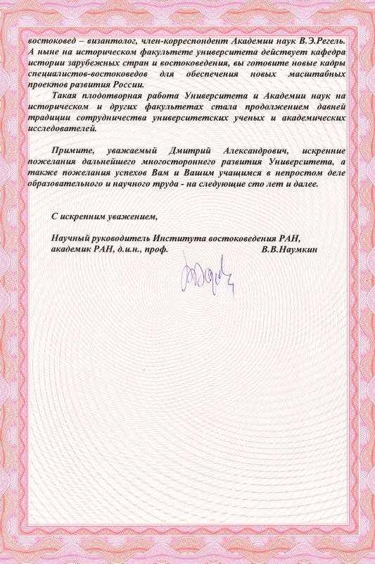 Научный руководитель Института востоковедения РАН, Почетный доктор ВГУ, академик РАН, профессор Виталий Наумкин поздравил Воронежский государственный университет с юбилеем.