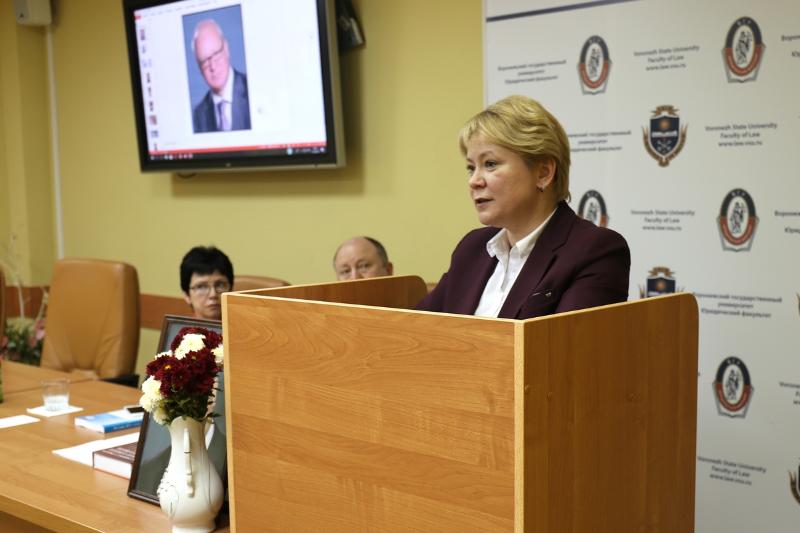 С приветственным словом к участника мероприятия обратилась первый проректор – проректор по учебной работе ВГУ Елена Чупандина. Она обратила внимание на необходимость выявления и обсуждения актуальных проблем высшего юридического образования, научного и практического рассмотрения общих вопросов совершенствования высшего юридического образования, разработки и внедрения инновационных образовательных технологий, обмена опытом, выработки рекомендаций по повышению качества образовательных услуг.