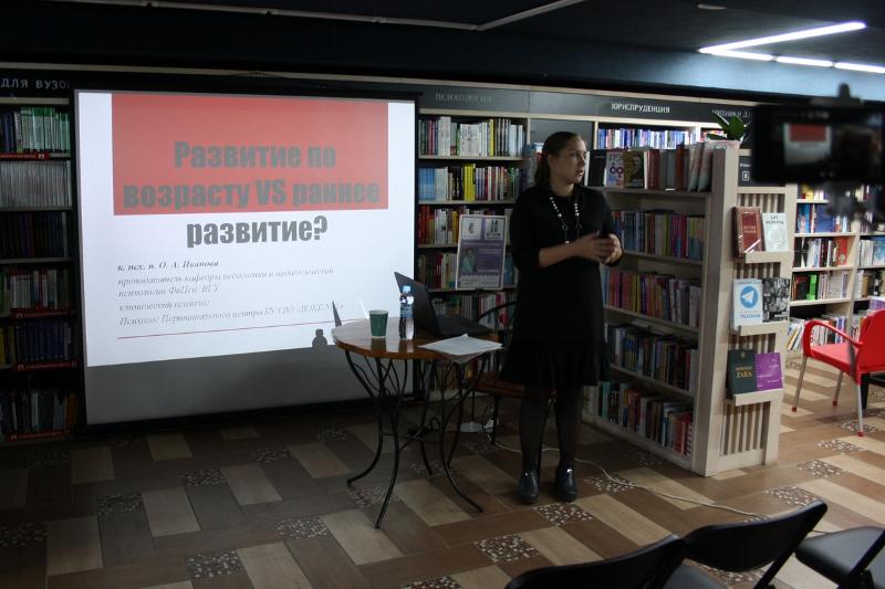 На первой после летнего перерыва встрече с жителями Воронежа была затронута тема подходов к образовательной и воспитательной работе с детьми, а также специфика современных развивающих технологий. Экспертный взгляд на проблему предложила преподаватель кафедры педагогики и педагогической психологии факультета философии и психологии Воронежского госуниверситета, клинический психолог, психолог Перинатального центра Воронежской областной клинической больницы № 1 Ольга Иванова.