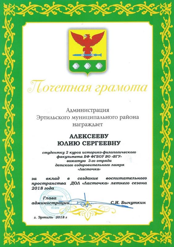 Летом 2018 года Борисоглебский филиал Воронежского госуниверситета обеспечил вожатыми детские оздоровительные лагеря шести районов Воронежской области. Сто студентов педагогического отряда «Вожатый» в течение летнего сезона организовали отдых полутора тысяч детей в лагерях «Дружба» и «Заря» (Борисоглебск), «Грибановский» (п.г.т. Грибановский), «Ласточка» (Эртиль), «Полянка» (Анна), «Чайка» (Павловск), в пришкольных лагерях Борисоглебска.