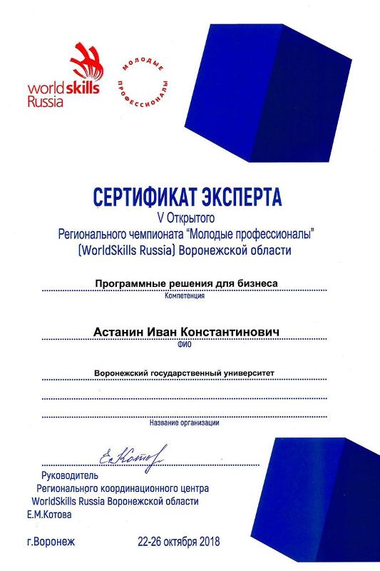 Воронежский государственный университет планирует в 2019 году расширение спектра участия в конкурсных компетенциях, а также внедрение лучших практик и международных стандартов WorldSkills в реализацию программ СПО.