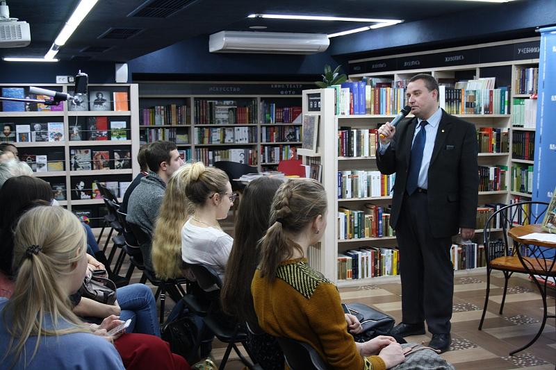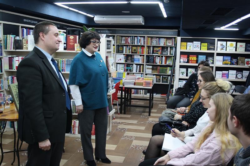 14 ноября в книжном магазине «Амиталь» на Пушкинской выступили зав. кафедрой издательского дела Жанна Грачева и доцент кафедры русской литературы XX и XXI веков, теории литературы и фольклора Владимир Гусаков в рамках научно-популярных чтений «Треугольник здоровья».