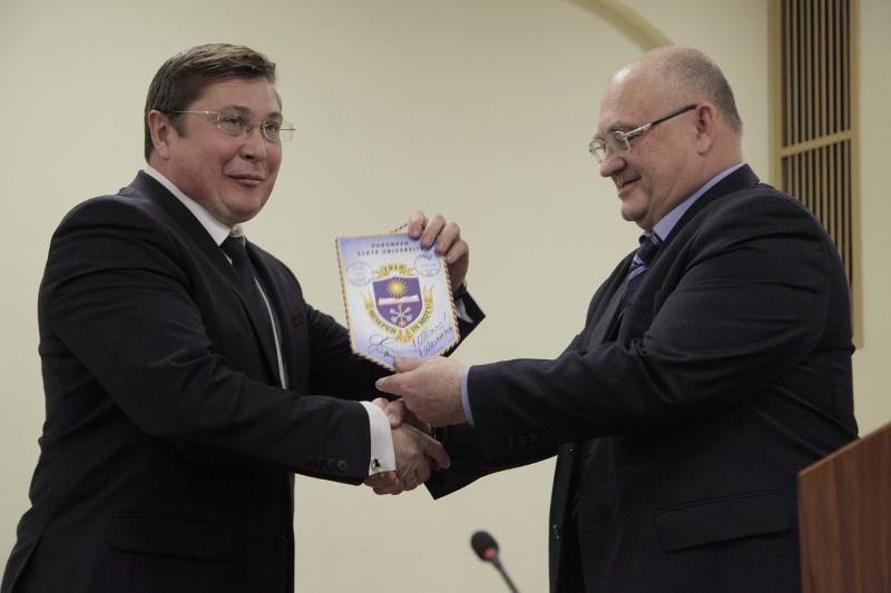 27 декабря ВГУ посетил главный конструктор Конструкторского бюро химавтоматики, выпускник математического факультета вуза Виктор Горохов. Он принял участие в Ученом совете и торжественно передал вымпел с символикой ВГУ руководству вуза.