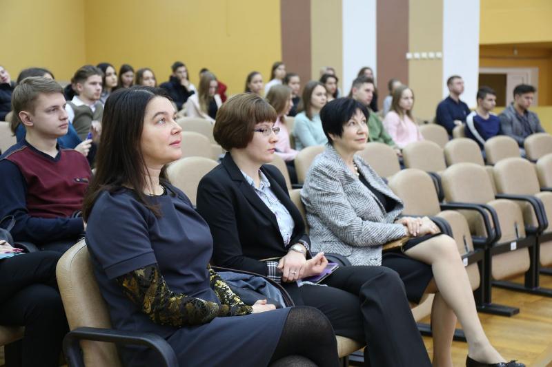 С приветственным словом к присутствующим обратилась заведующая кафедрой конституционного и муниципального права, профессор Татьяна Бялкина, доцент этой кафедры Елена Сазонникова выступила с презентацией, посвященной Конституции в символике. Она познакомила слушателей с памятниками, наградами, плакатами, марками, значками и другими артефактами, посвященными Конституции, и являющимися неотъемлемой частью конституционно-правовой культуры общества.