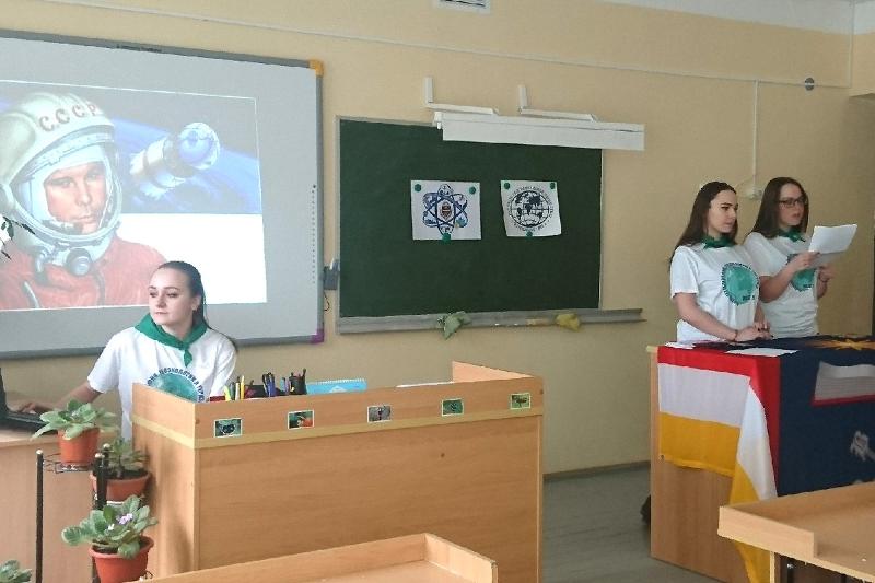 Школьникам показали фильм о Гагарине. Затем был проведен брейн-ринг «Космическая одиссея». Он состоял из следующих туров: категория «Имена», категория «Планеты», категория «Звезды», категория «Космическая обсерватория» и категория «Космические аппараты». Победители были награждены ценными подарками.