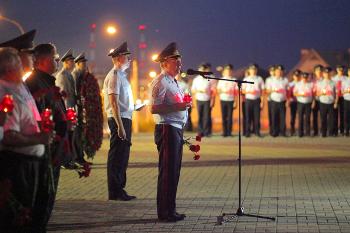 В Воронеже прошли памятные мероприятия, посвященные Дню памяти и скорби. 21 июня у мемориала Чижовский плацдарм состоялась Общероссийская акция «Завтра была война…». На площади собрались курсанты Воронежского института МВД России, представители правоохранительных органов, члены Общественного совета при ГУ МВД России по Воронежской области. Участие в акции также принял ректор Воронежского государственного университета, председатель Общественного совета при ГУ МВД Дмитрий Ендовицкий.
