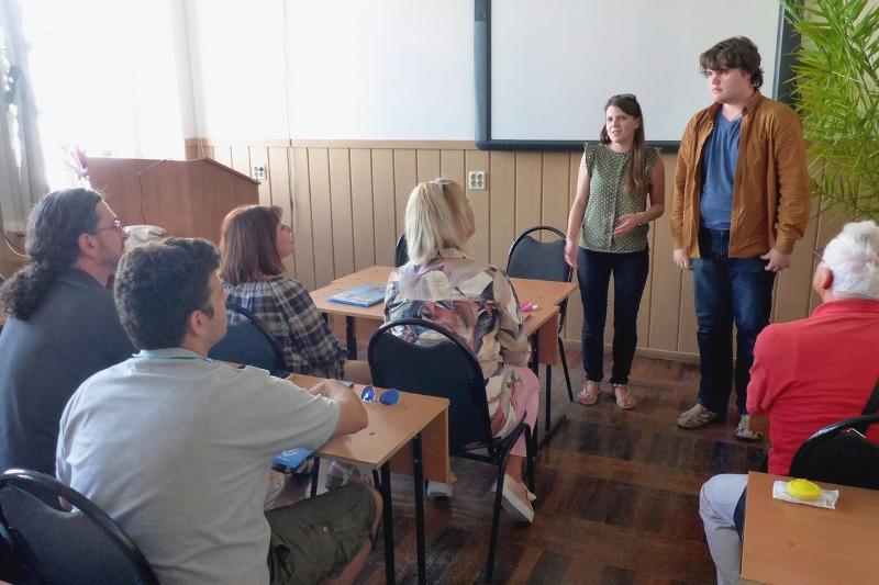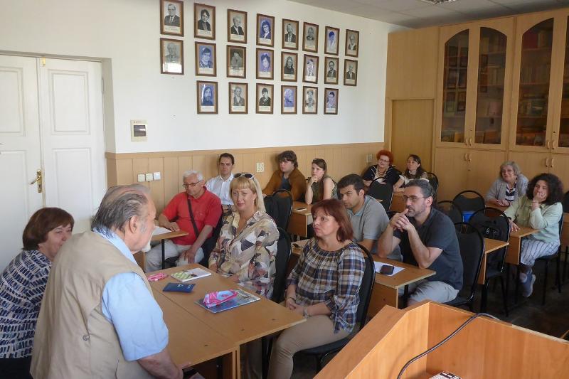 Профессор филологического факультета Геннадий Ковалёв обратился к собравшимся с приветственной речью, рассказал о том, что будет входить в программу работы школы, подчеркнул значимость живого общения и разговорной практики.