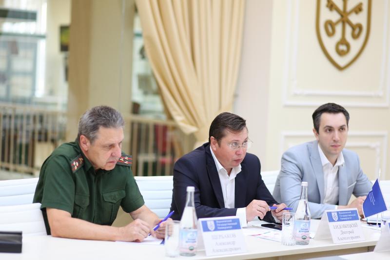 24 июля ректор Воронежского государственного университета Дмитрий Ендовицкий, начальник управления инноваций и предпринимательства Дмитрий Жукалин и декан факультета военного образования Александр Щербаков встретились с врио заместителя начальника Военного инновационного технополиса «ЭРА» по инновационному развитию Евгением Яковлевым. Собравшиеся обсудили возможные направления сотрудничества, а также вопросы, связанные с созданием воронежской научной роты в технополисе.