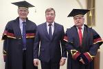 20 июня в конференц-зале Главного учебного корпуса Воронежского государственного университета состоялось торжественное вручение диплома и мантии Почётным докторам ВГУ – международному эксперту по высшему образованию Европейской комиссии, директору компании Semantika Ltd, профессору Стивену Джорджу Сидни Хейгену и руководителю химического/промышленного технопарка (Dow Olefinverbund GmbH Leiter ValuePark, Германия), инициатору создания Ассоциации немецких выпускников ВГУ Клаусу-Дитеру Хайнце.