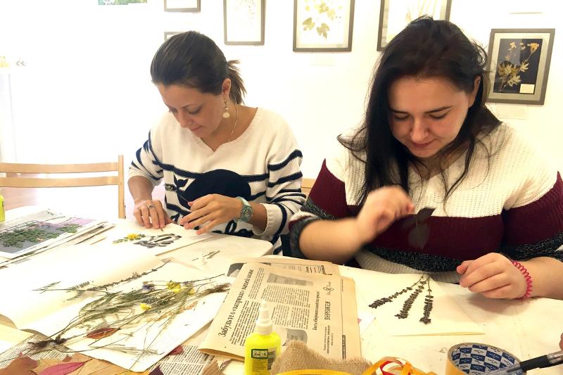 Параллельно с лекциями сотрудники факультета провели мастер-класс «Цветочная открытка». Каждый участник создал неповторимую открытку, используя гербарный материал.