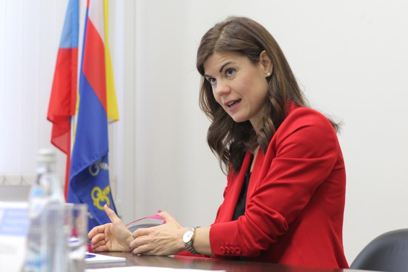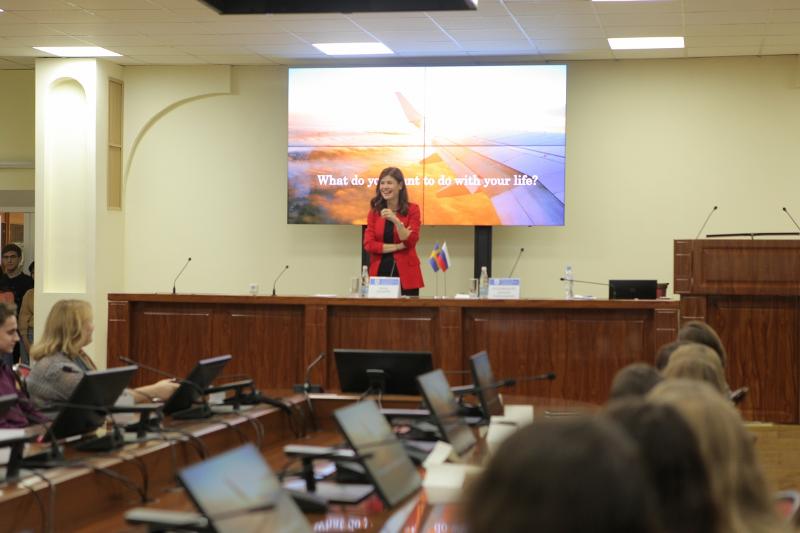 Она встретилась с ректором вуза Дмитрием Ендовицким и деканом факультета романо-германской филологии Ольгой Борискиной, после чего в конференц-зале Главного учебного корпуса ВГУ рассказала студентам о том, как построить международную карьеру и какие профессиональные навыки для этого нужны.
