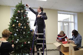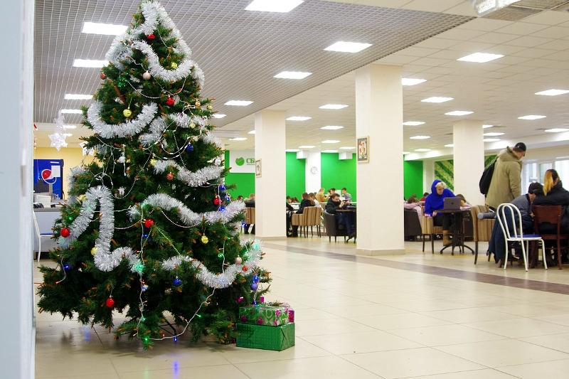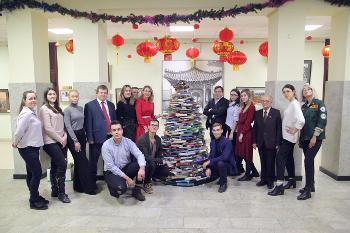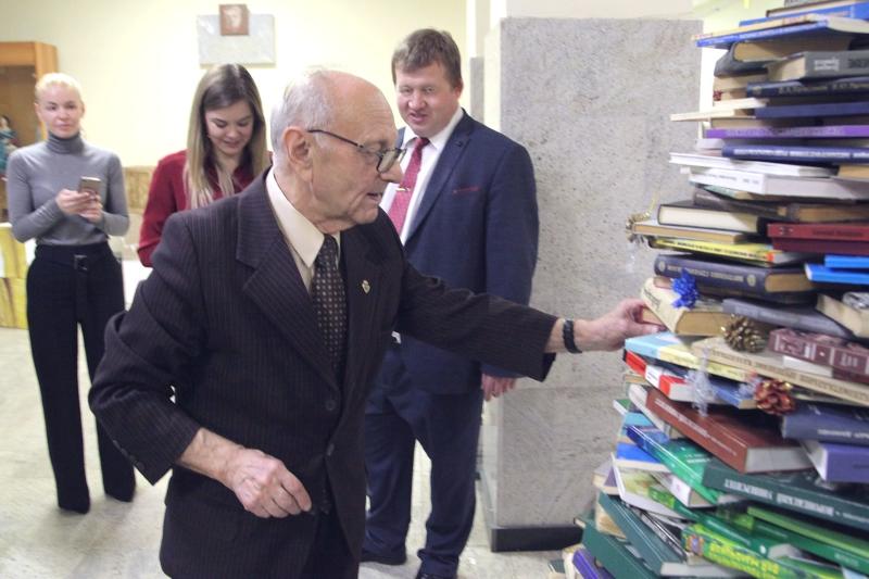 На втором этаже рядом с конференц-залом расположилась книжная ёлка. Руководство вуза, библиотека и все факультеты, находящиеся в Главном корпусе, приняли участие в её создании: они поделились учебной, научной, справочной литературой и методическими пособиями разных лет. Студенты приносили детские и художественные книги для того, что после демонтажа ёлки – 20 января – передать их в детские дома.
