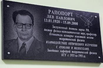 – Рапопорт был исключительно интересным человеком. Он был очень увлечен физикой, кожей «чувствовал» новые научные направления для исследований. Работать с ним было сложно, но интересно. Атмосфера, созданная им на кафедре, была идеальна для развития науки. Считаю, что добрая память о нем должна быть у любого человека, причастного к факультету, – сказал заведующий кафедрой ядерной физики Станислав Кадменский.