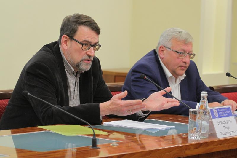 2 марта в конференц-зале Главного учебного корпуса Воронежского государственного университета состоялась очередная лекция заслуженного деятеля искусств Воронежской области дирижера Воронежского академического симфонического оркестра Игоря Вербицкого на тему «Становление симфонической музыки 17–18 вв.». Послушать маэстро пришли студенты и сотрудники Воронежского госуниверситета.