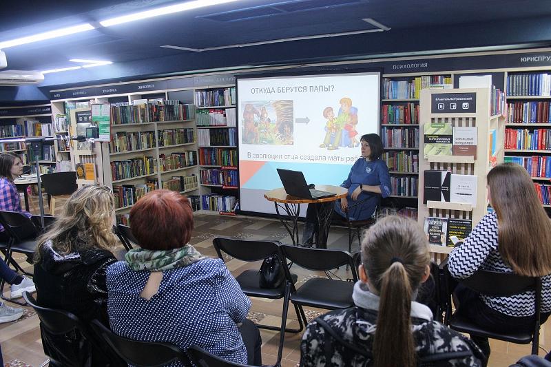 12 марта на площадке книжного магазина «Амиталь на Пушкинской» в рамках научно-популярного проекта «Треугольник 2.0» состоялась встреча с медицинским психологом перинатального центра Воронежской областной клинической больницы № 1 Лидией Квасовой. Она предложила собравшимся поразмышлять над феноменом отцовства в современном мире. Послушать практикующего психолога пришли студенты и сотрудники Воронежского госуниверситета, а также любознательные горожане.