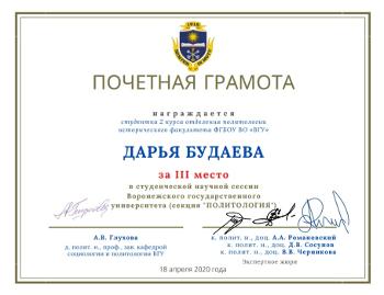 18 апреля в новом дистанционном формате прошла студенческая научная сессия на отделении политологии исторического факультета Воронежского государственного университета.