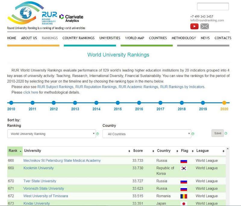 Рейтинг университетов RUR World University Ranking оценивает высшие учебные заведения по всему миру с 2010 года, охватывая 1100 ведущих вузов из 85 стран. Эксперты анализируют деятельность университетов по 20 показателям, сгруппированным в четыре ключевых направления: преподавание, научные исследования, интернационализация, финансовая устойчивость.