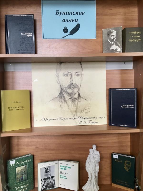 22 октября в отделении художественной литературы Зональной научной библиотеки Воронежского госуниверситета начинает работу выставка «Бунинские аллеи». Экспозиция посвящена 150-летию со дня рождения русского писателя, поэта и переводчика Ивана Алексеевича Бунина (1870-1953).
