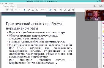 Елена Александровна рассказала участникам о существующих моделях оценки качества перевода и стандартах переводческой деятельности. Большой интерес аудитории вызвали критерии оценки качества перевода и методика её расчета. Лектор поделилась опытом оценки учебных (студенческих) переводов и концептуальными положениями, которые нашли отражение в её монографии «Оценка качества перевода: история, теория, практика» (Москва: Флинта, 2018).