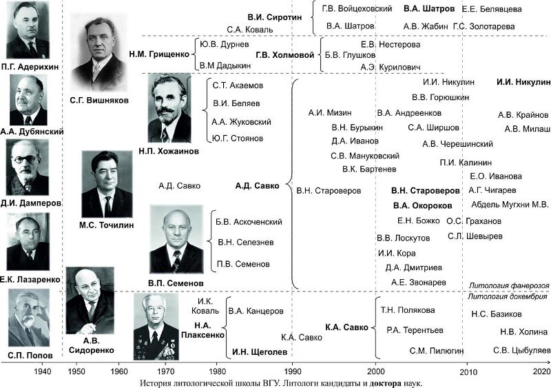 У истоков воронежской школы литологии в тридцатых годах прошлого столетия стояли первый декан организованного в 1936 году геологического факультета Александр Дубянский, а также Евгений Лазаренко, Георгий Горшков, Дмитрий Дамперов. Александр Дубянский удостоен Ленинской премии за прогноз месторождений богатых железных руд Курской магнитной аномалии, Евгений Лазаренко стал академиком УССР и ректором Львовского университета, Георгий Горшков возглавил кафедру общей геологии МГУ имени М.В. Ломоносова.