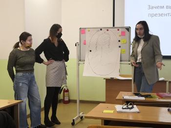 13 февраля года на заседании Студенческого научного общества кафедры управления и экономики фармации и фармакогнозии состоялось выступление практикующего бизнес-тренера, эксперта по профориентации, исследователя в развитии творческого и креативного мышления Елены Каюковой. Она рассказала студентам о навыках публичного выступления. Ребята узнали, как формулировать идеи и воплощать их в проект. Елена Каюкова также объяснила, почему на этапе формирования проекта вопросы необходимо задавать не только себе, но и окружающим.