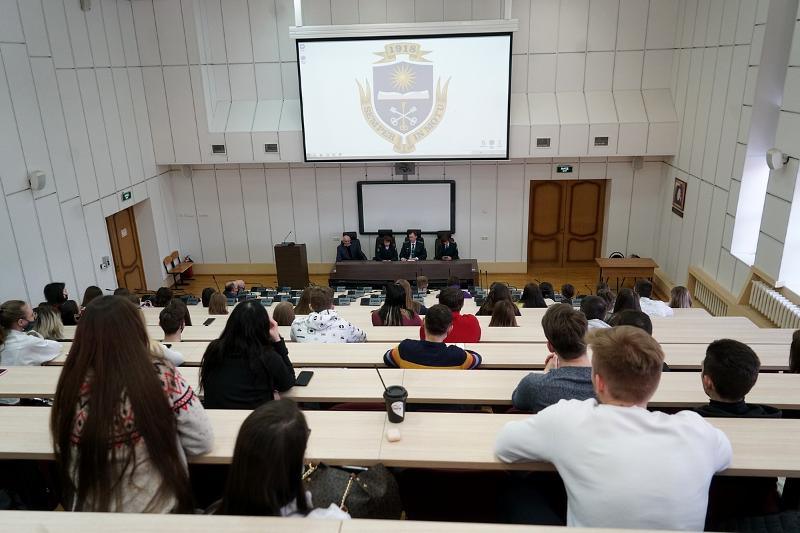 18 февраля в Воронежском государственном университете состоялась встреча представителей руководства Воронежской таможни со студентами первого курса специалитета «Таможенное дело», четвертого курса бакалавриата, первого и второго курсов магистратуры экономического факультета и факультета международных отношений. Организаторами выступили профессор Юрий Трещевский, доцент Елена Ендовицкая, доцент Екатерина Цебекова.