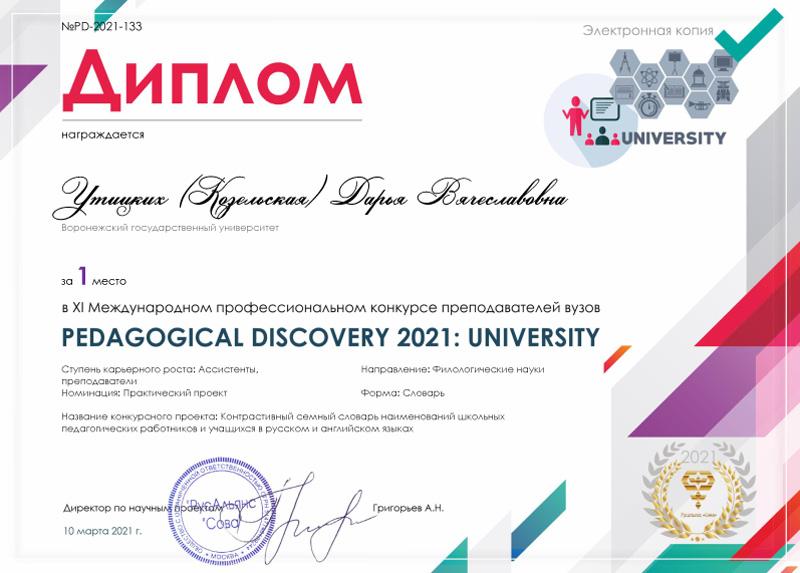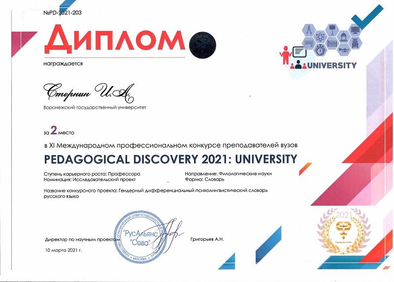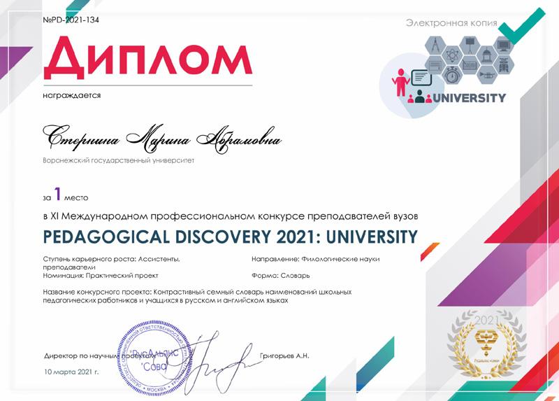 10 марта подвели итоги XI международного профессионального конкурса преподавателей вузов «Pedagogical Discovery 2021: University». Среди победителей конкурса – филологи ВГУ.