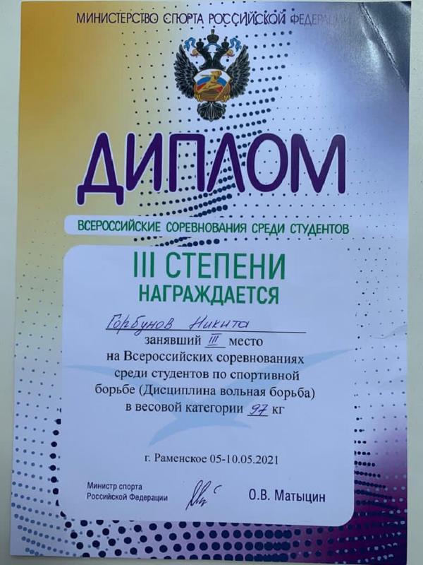 6–7 мая в городе Раменское Московской области прошёл Чемпионат России по вольной борьбе среди студентов. Третье место занял студент второго курса геологического факультета Никита Горбунов (весовая категория – до 97 кг). Студент математического факультета Евгений Просветов стал пятым (весовая категория – до 74 кг). Спортсменов готовили мастер спорта СССР Александр Беланов и мастер спорта России Сергей Корчагин.