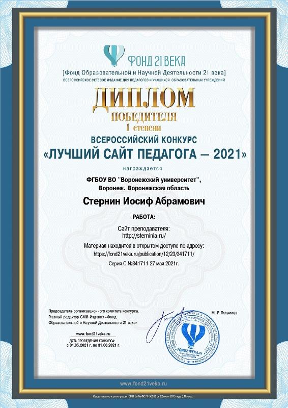 Сайт профессора Стернина был отмечен и в прошлом году – он стал победителем Международного конкурса преподавателей вузов «Pedagogical discovery: University – 2020» в номинации «Web-сайт учёного».