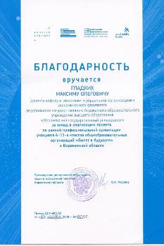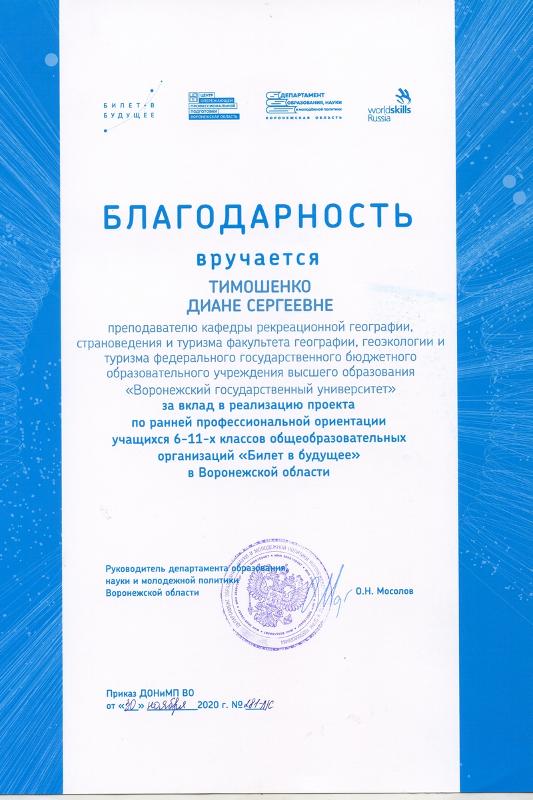 Воронежский государственный университет провёл профессиональные пробы по компетенциям «Предпринимательство» и «Туризм». Наставником по компетенции «Предпринимательство» стал Максим Гладких – генеральный директор ООО «Евроконсалт», заместитель начальника управления инноваций и предпринимательства, кандидат экономических наук, доцент кафедры экономики и управления организациями ВГУ, по компетенции «Туризм» – кандидат экономических наук, доцент кафедры рекреационной географии, страноведения и туризма, эксперт отечественного туризма, член профессиональных туристских объединений Диана Тимошенко.