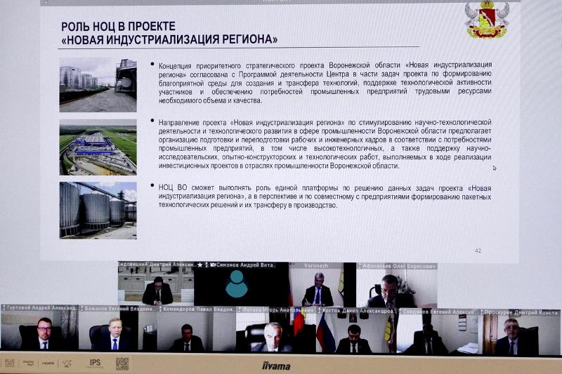 Ректор ходатайствовал о поддержке Центра на региональном уровне и привёл примеры результатов коллаборации в рамках НОЦ. В частности, за последние два года в ВГУ созданы 5 современных лабораторий в области искусственного интеллекта. Это осуществлено силами и средствами индустриальных партнёров вуза – концерна «Созвездие», Новолипецкого металлургического комбината, Сбербанка, группы компаний «Техрос». Университет вошёл в федеральную программу развития национальной микроэлектроники. На базе вуза функционирует инжиниринговый центр в области рационального природопользования.