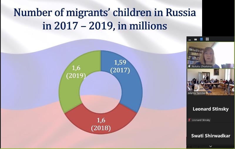 Наталья Журбина выступила с докладом на тему «Миграционная политика России по отношению к детям иммигрантов: проблемы и перспективы (на примере иммигрантов из Узбекистана, Таджикистана и Армении)». Тема была выбрана по просьбе немецкой стороны: в 2019 году на конференции в Гёттингенском университете Наталья Журбина выступала с докладом на эту тему, и весной нынешнего года профессор Тамке предложил выступить с продолжением этой темы на предстоящей конференции.