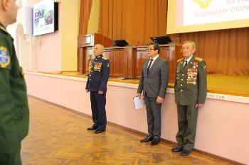 – С 1926 года наш вуз готовит офицерские кадры. Наши выпускники работают в самых отдалённых гарнизонах по всей России и далеко за её пределами. Среди наших выпускников – герои России офицеры, награждённые боевыми орденами. Несмотря на все сложности, вы смогли не просто выстоять, но и победить. Сегодня мы готовим достойные кадры для ракетных и артиллерийских войск, для главного управления генштаба Вооруженных сил РФ. Наш вуз – единственный в стране, где ведётся подготовка кадровых офицеров для департамента информации и массовых коммуникаций, а также для психологической работы Министерства обороны РФ. Результаты вашего труда находят высокую оценку со стороны представителей министерства обороны и пограничной службы федеральной службы безопасности РФ. Мне как выпускнику военной кафедры видны плоды вашего труда. Выражаю вам свою благодарность и признательность. В ознаменование 95-й годовщины со дня начала военного образования в ВГУ Учёный совет принял решение считать 1 октября праздником Военного учебного центра в ВГУ. От имени ректората и себя лично поздравляю вас с этой знаменательной датой. Желаю успехов в вашем нелёгком труде. Горжусь, что я выпускник военной кафедры!
