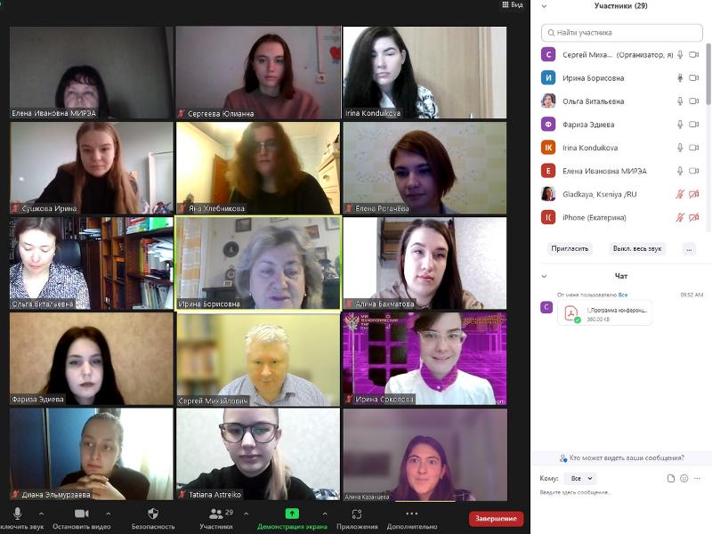 Прислали статьи в сборник научных трудов и благодаря возможностям онлайн-платформы выступили с докладами участники из Сургута, Перми, Красноярска, Липецка, Ельца, Симферополя, Самары, Новосибирска, Белгорода, Воронежа. Московские вузы были представлены Государственным университетом управления, Российским государственным гуманитарным университетом, Московским авиационным институтом. Ближнее зарубежье – Армянским национальным экономическим университетом (Ереван), Белорусским государственным университетом, Белорусским государственным технологическим университетом (Минск).