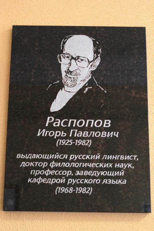 На филфаке ВГУ 20 января открыли мемориальные доски, посвящённые знаменитым профессорам факультета – Игорю Павловичу Распопову (1925–1982) и Анатолию Михайловичу Ломову (1935–2018). Доски с портретами выдающихся языковедов разместили на третьем этаже второго учебного корпуса ВГУ – по бокам входа на кафедру русского языка. Оба учёных в своё время были её заведующими, а сегодня кафедру возглавляет доктор филологических наук Людмила Кольцова – ученица Игоря Павловича и Анатолия Михайловича.