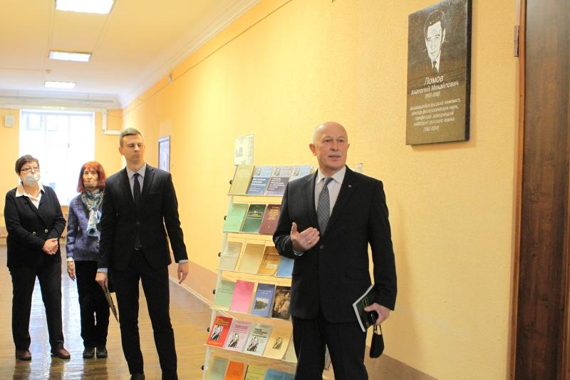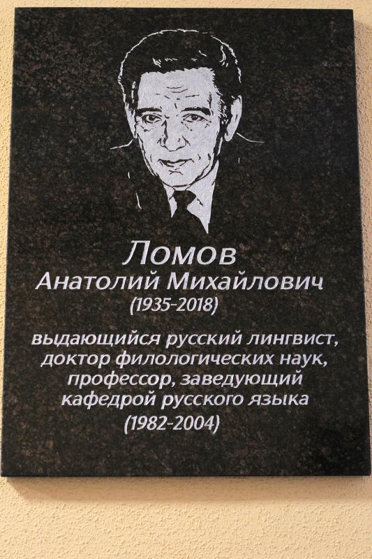 Вдова профессора Ломова – доцент кафедры перевода и профессиональной коммуникации Татьяна Михайловна – поблагодарила всех университетских людей, помнящих её мужа, и скульптора Юрия Астапченко – создателя мемориальных досок профессоров Распопова и Ломова.