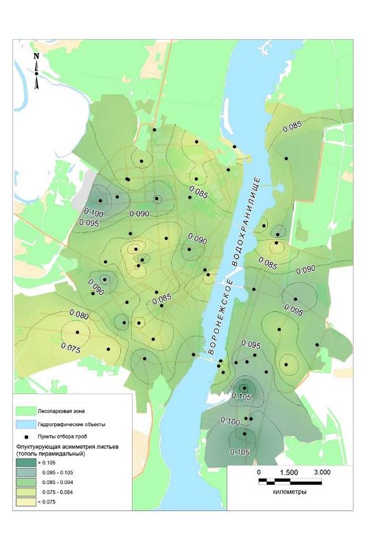 Исследователи разработали системный подход к проблеме – оценка экологических рисков для населения в городах Черноземья с помощью комплекса научных методик. В первую очередь, с помощью базы данных, которая включает: параметры шумового воздействия; концентрацию опасных веществ в атмосфере; критерии реакций деревьев на загрязнение городской среды. (Последнее визуализировано на карте города.) Так, исследования, проведённые в 2020–2021 годах, показали: в промышленных районах Воронежа размеры тополиных листьев отклоняются от обычных фоновых значений (проявляется асимметрия листовых пластинок). И листья, и сами деревья имеют признаки, характерные для стрессовых условий окружающей среды. Такая среда – в Левобережном районе, где сосредоточены крупные промышленные предприятия; на придорожных территориях – вдоль Московского и Ленинского проспектов, улиц Антонова-Овсеенко, 9 Января. Если же говорить о более комфортных местах для проживания в Воронеже, то это – микрорайон Берёзовая роща, Северный и Юго-Западный районы.