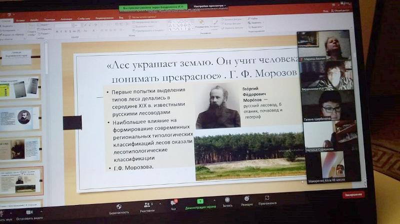 В заседании приняли участие студенты и преподаватели факультета географии, геоэкологии и туризма ВГУ, а также педагоги города и области. Участники выступили с докладами, посвящёнными биографии и научным представлениям Г.Ф. Морозова, его вкладу в развитие географической науки, деятельности в Каменной Степи. Педагоги обсудили прикладные вопросы использования научных трудов Г.Ф. Морозова в современных исследованиях, в том числе краеведческих. В работе семинара приняли активное участие представители учебных заведений города и области.