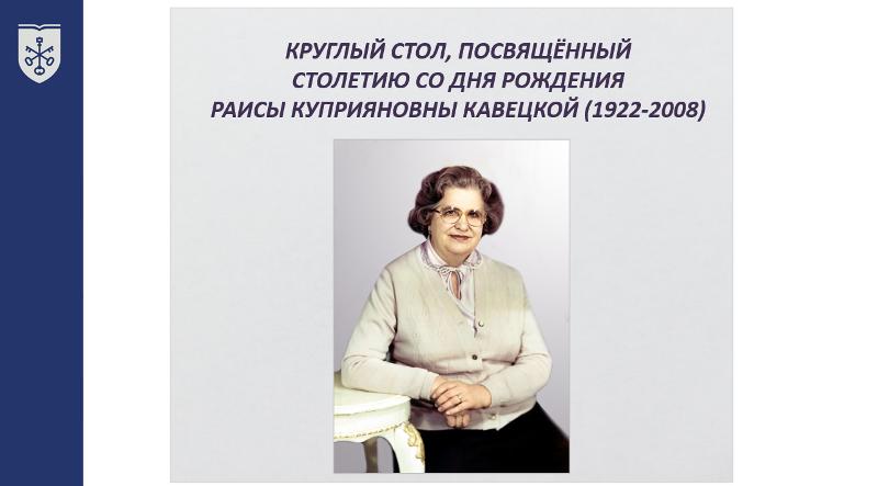18 февраля на филологическом факультете ВГУ прошёл круглый стол, посвящённый 100-летию со дня рождения Раисы Куприяновны Кавецкой (1922–2008) – специалиста по русской морфологии и лексикографии, основателя и первой заведующей кафедрой современного русского языка ВГУ.