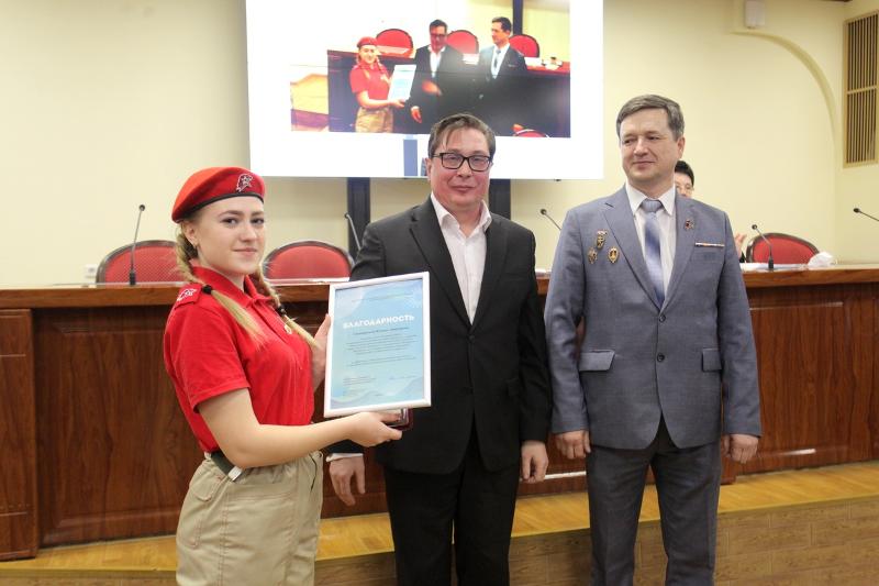 В заседании принял участие начальник регионального отделения Юнармии Александр Картавцев, вручивший знак «Юнармейская доблесть» и благодарность Департамента образования, науки и молодёжной политики Юлиане Свешниковой – студентке 1-го курса экономического факультета ВГУ, активной участнице юнармейского движения в регионе.
