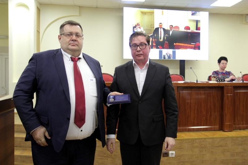 Знаком «За заслуги перед ВГУ» был награждён Генеральный директор АО МГК «ИНТЕХРОС» Сергей Коновалюк. В ответной речи он сказал о тёплых отношениях между компанией, которую возглавляет, и ВГУ: