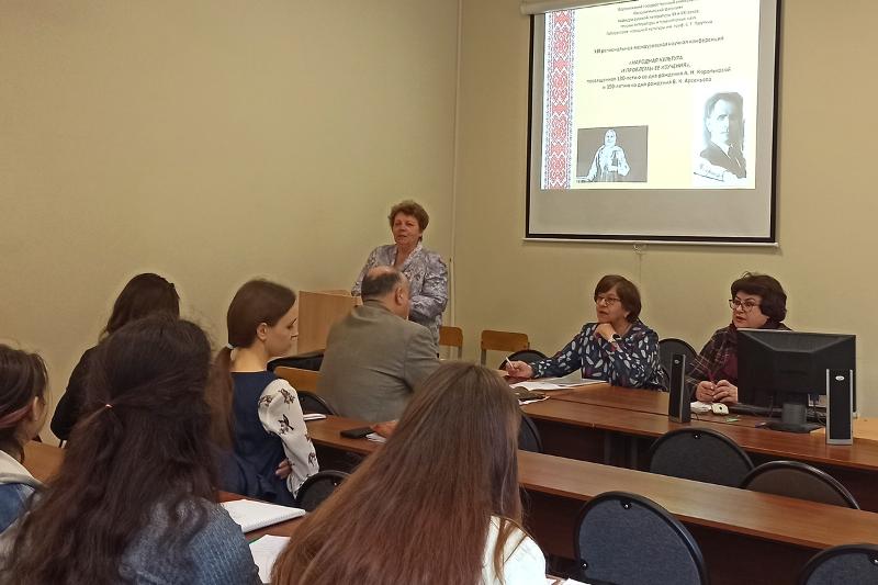 20 мая на филологическом факультете ВГУ состоялась XII региональная межвузовская научная конференция «Народная культура и проблемы и её изучения», посвященной 130-летию со дня рождения А. Н. Корольковой и 150-летию со дня рождения В. К. Арсеньева.
