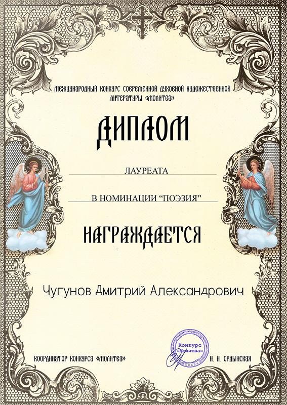– Конкурс – хорошее место встречи единомышленников. Как сказал один из членов жюри, профессор Литературного института, хорошая, духовная поэзия – это тоже способ борьбы за наши ценности, способ сохранения своего государства. И понимаешь при этом, что духовная литература не состоит из неких заданных тем и надоевших образов. Понимаешь, что люди пишут о действительно важном, глубинном, вечном, – отметил Дмитрий Чугунов.