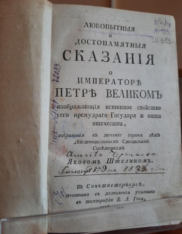 В течение сорока лет собирал материал о Петре I Якоб Штелин (1709–1785) – деятель российской Академии наук, действительный статский советник. Результатом его исследований стал труд «Любопытные и достопамятные сказания о императоре Петре Великом…» (1786).