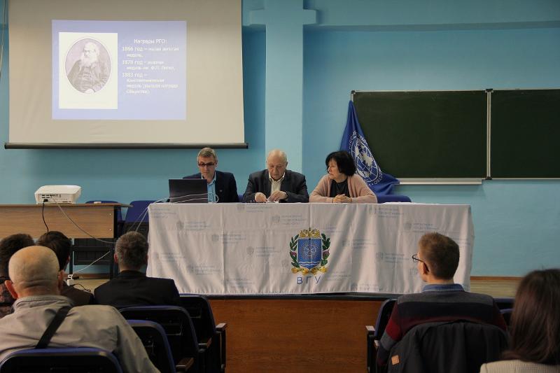 На факультете географии, геоэкологии и туризма ВГУ состоялось общее собрание Воронежского областного отделения Русского географического общества. На встрече присутствовали члены отделения, среди которых – вузовские учёные, педагоги средних учебных заведений и учреждений дополнительного образования, музейные работники и общественные деятели.